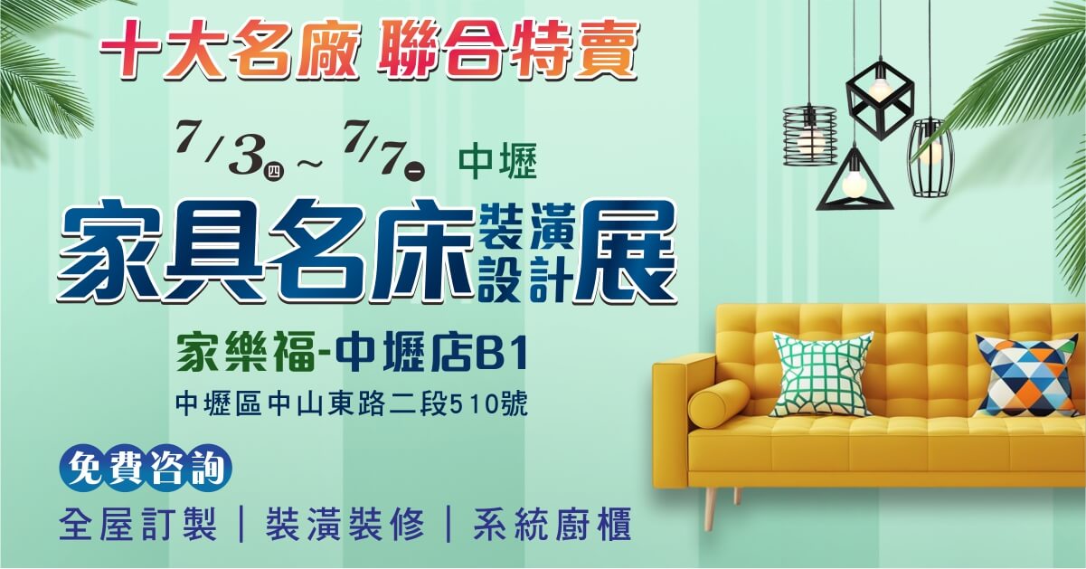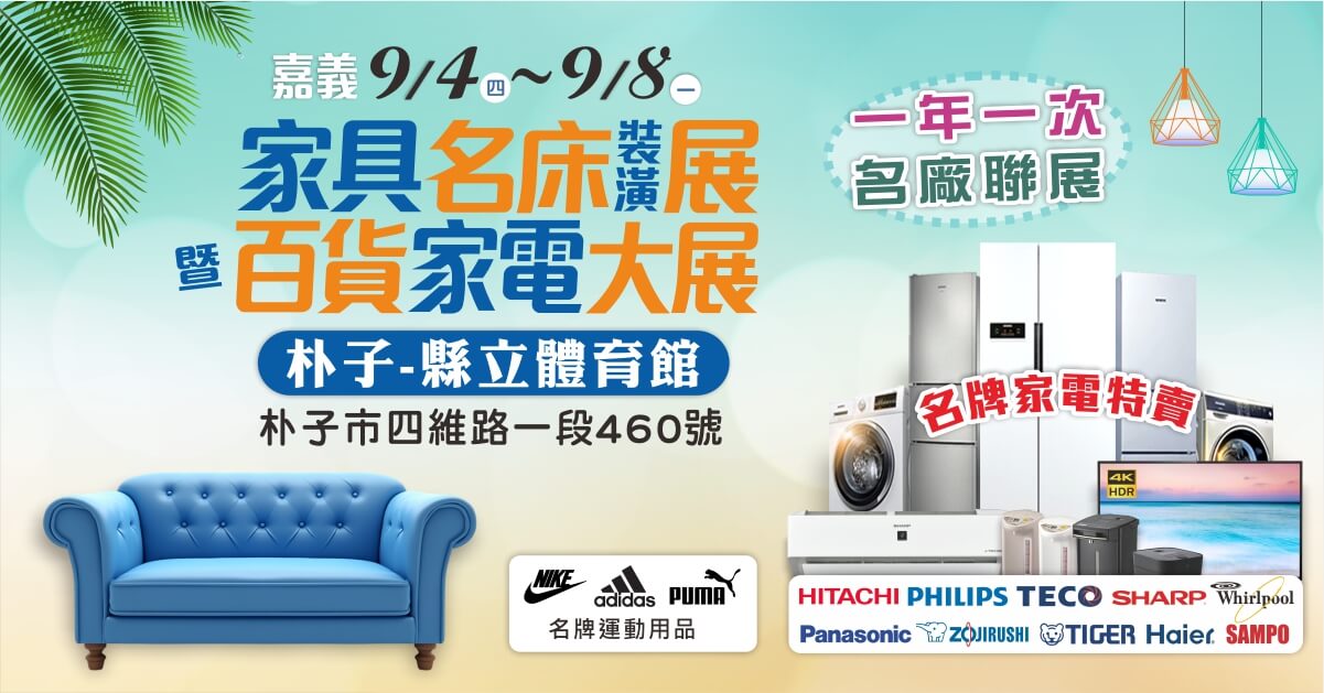 最新展覽 Latest exhibition 2025-10/3~10/6新店家具名床展馬公公園-體育館(新店北新路一段92號) 展覽資訊 2025-10/9~10/12苗栗家具名床展苗栗-巨蛋體育館(苗栗市國華路1121號) 展覽資訊 大會活動 Event Information 展覽實績 Performance 2025-9/19~9/22基隆家具名床展基隆港-東4“2F”(藏壽司、中正區中正路3號2樓) 2025-9/4~9/8嘉義朴子家具名床展朴子縣立體育館 (朴子市四維路一段460號) 2025-7/3-7/7中壢家具名床展家樂福-中壢店B1(中山東路二段510號) 2025-5/29-6/2彰化秀水家具名床展(原)秀水-寶家(寶雅旁)-彰化縣秀水鄉彰水路二段689號 2025-5/1-5/4彰化家具名床展溪洲公園-陳列館(溪州鄉中央路三段138號) 2025-4/18-4/21新竹家具名床展中正市場2F(新竹市中正路245號) 查看更多 參展廠商 Exhibitors